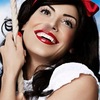 Sie hat ein bildhübsches Gesicht mit schwarzen Haaren.
