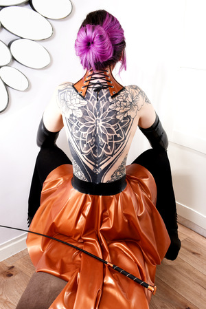 Mein Vergnügen wächst mit jedem Moment des Loslassens, des frei Werdens und der Seele Ausdruck verschaffen durch Materialien wie Latex, Leder oder Nylon, durch Schmerz, Farbe, Metall.