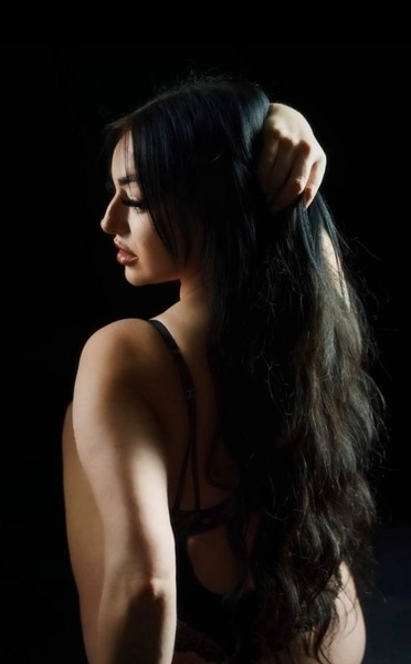 Haare:schwarz, rückenlang, glatt